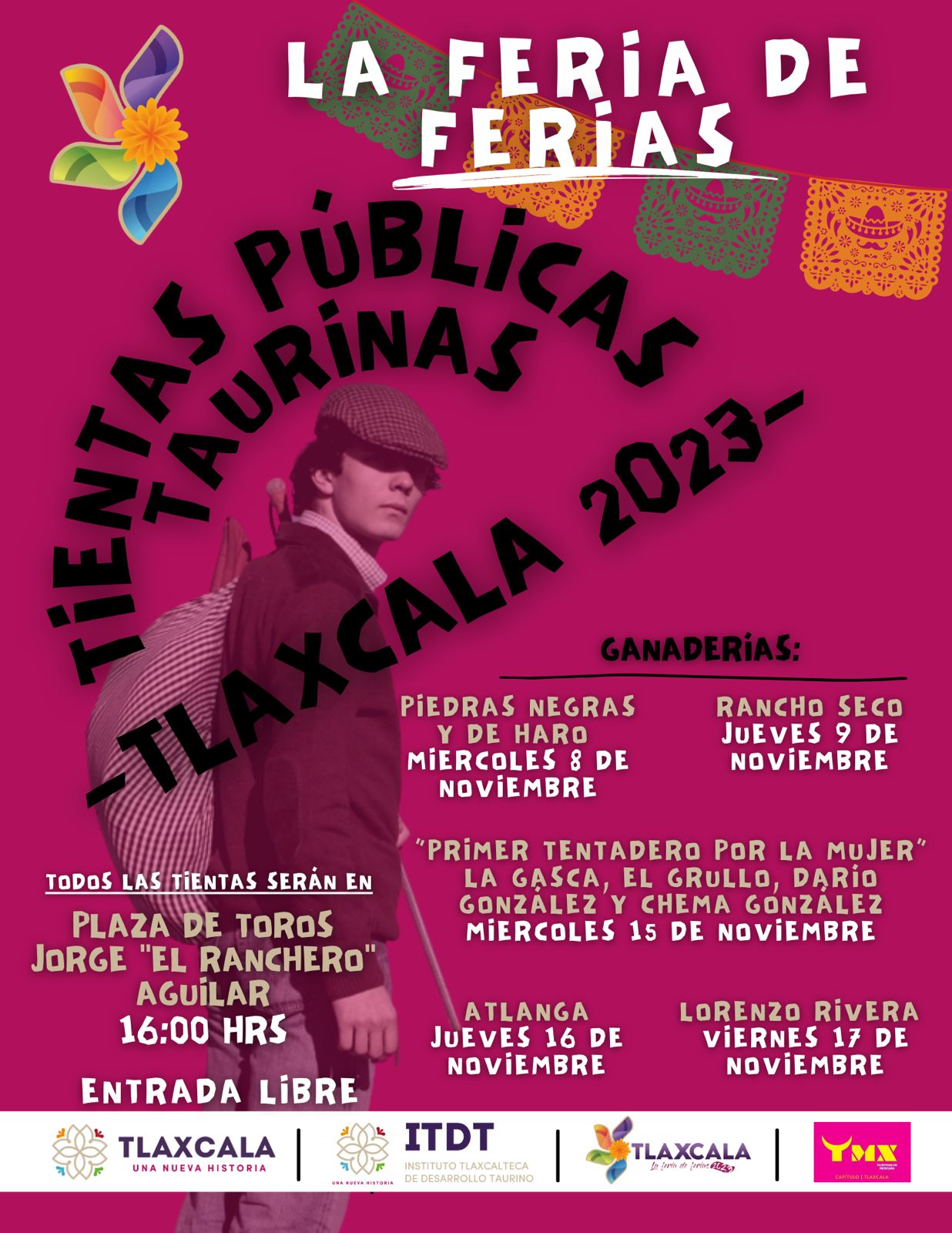 El Patronato para las Exposiciones y Ferias en la Ciudad de Tlaxcala y el Instituto Tlaxcalteca de Desarrollo Taurino (ITDT) invitan a las personas a asistir a las tradicionales tientas públicas en la Plaza de Toros Jorge “El Ranchero” Aguilar.