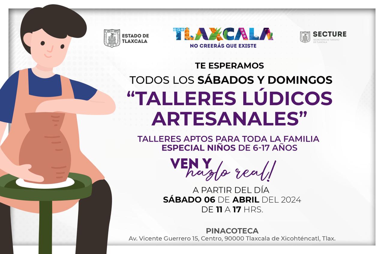 La Secretaría de Turismo del Estado (Secture) invita a niños y jóvenes de 6 a 17 años a participar en los “Talleres lúdicos artesanales” que se realizarán todos los sábados y domingos del 2024 en la Pinacoteca del estado, en coordinación con la Secretaría de Cultura (SC).