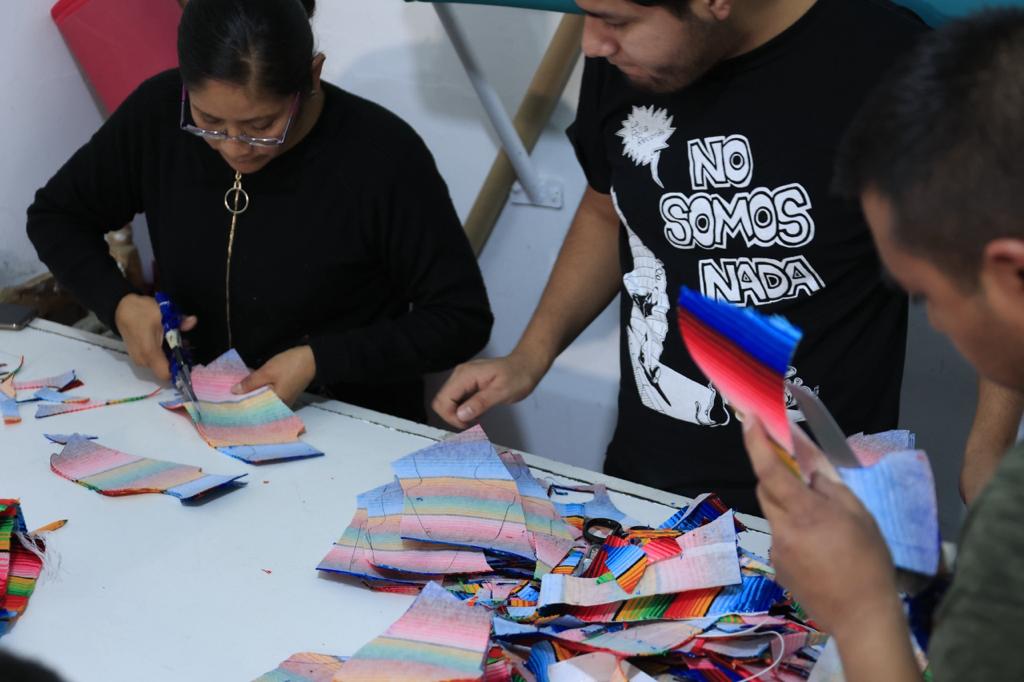 Tras explicar y mostrar sus técnicas para la elaboración, orgulloso, comentó que “lo mejor de esto es que además genera economía para Tlaxcala, pues crea nuevos empleos, involucra a artesanos para surtir la tela, también se apoya a costureras, los operadores necesarios para las máquinas que utilizan y gente que ayuda con los envíos”.