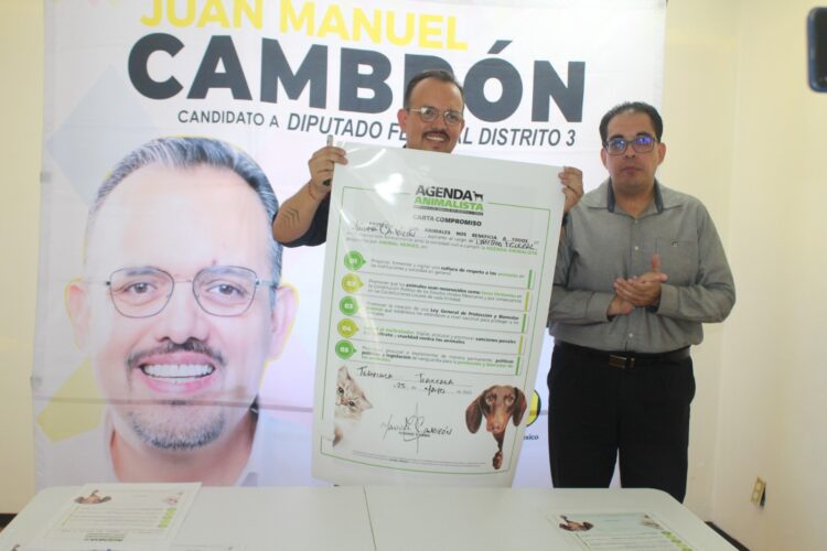 Como parte del Pacto Animalista, Juan Manuel Cambrón trabajará para promover y apoyar iniciativas legislativas que penalicen el maltrato animal de manera efectiva, así como la creación de refugios y centros de rehabilitación para animales maltratados o abandonados, pero sobre todo el que legalmente se reconozca que los animales son seres sintientes, entre tantas otras cosas.