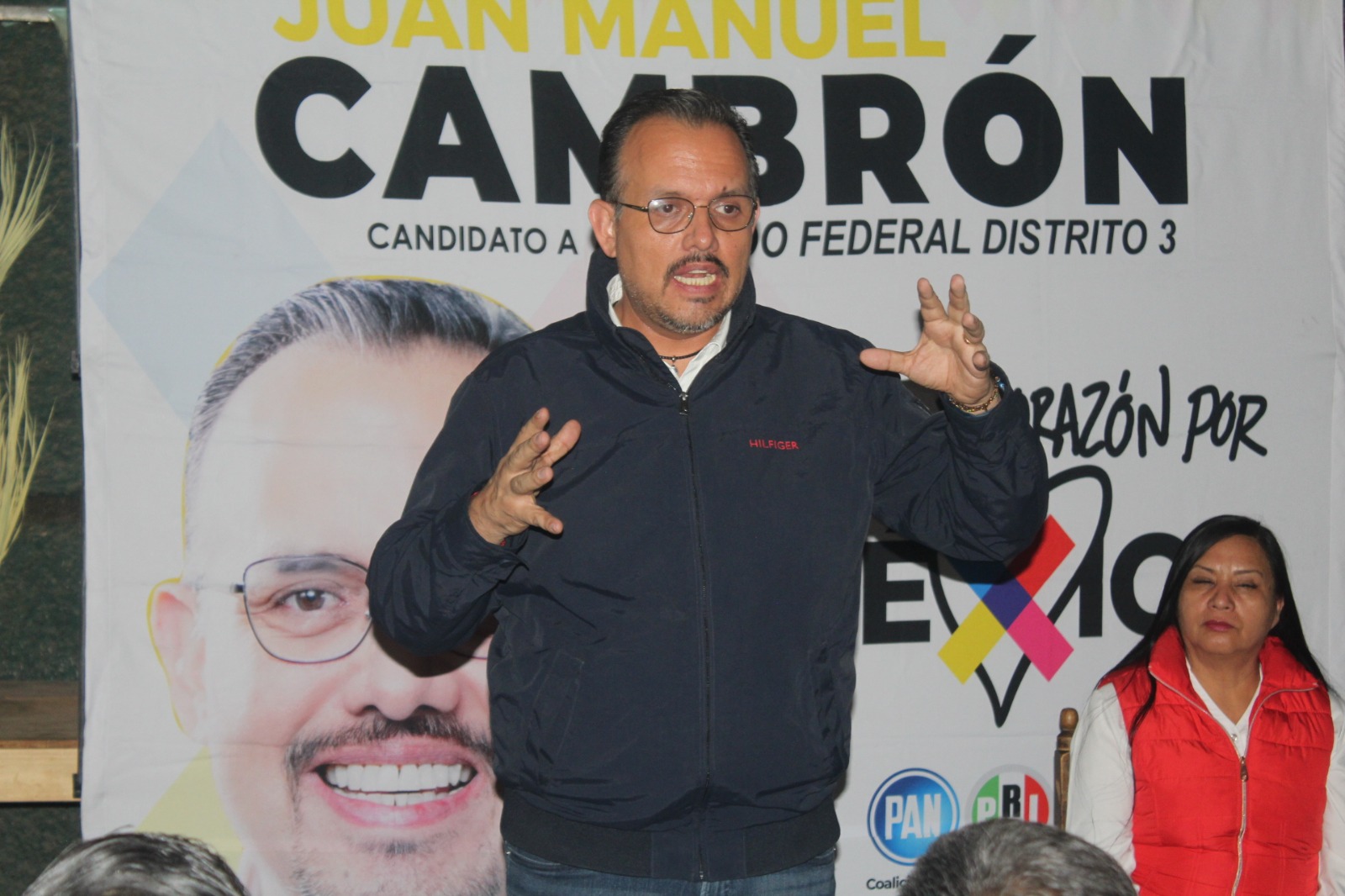 El candidato a diputado federal por la coalición Fuerza y Corazón por México, Juan Manuel Cambrón, se reunió en Papalotla con maestros y vecinos de la 5ta sección y de la colonia de San Buenaventura.