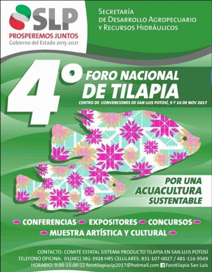 Esto en el marco de la presentación del 4º Foro Nacional de tilapia, a realizarse los días 9 y 10 de noviembre en el Centro de Convenciones del estado de San Luis Potosí.