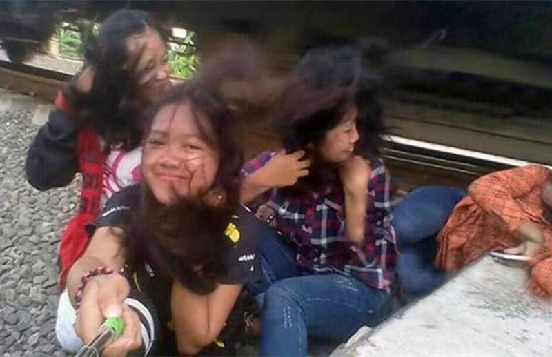 A través de redes sociales, se viralizó una serie de fotografías de las jóvenes que intentaban tomarse selfies junto a las vías de un tren en Java Central, Indonesia.
