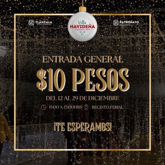 La Villa Navideña abre sus puertas todos los días en un horario de 15:00 a 21:00 horas con un costo de entrada de 10 pesos, y diariamente de 15:00 a 16:00 horas los juegos mecánicos son gratuitos.