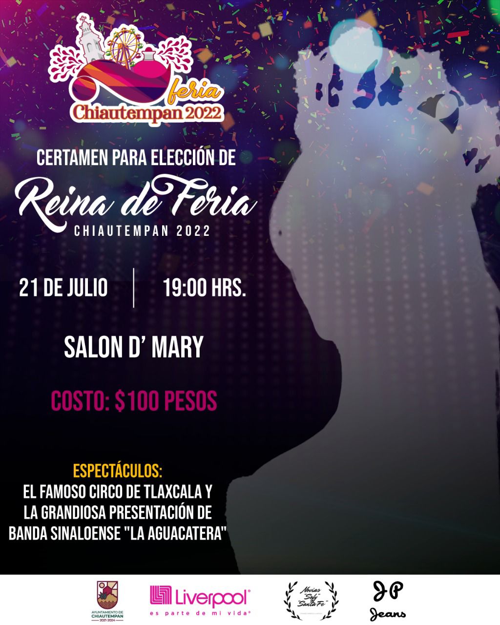 El Patronato de la Feria Chiautempan 2022 informa que el certamen de la elección de reina se llevará a cabo este jueves 21 de julio en el salón de D´Mary en punto de las 19 horas y contará con todas las medidas sanitarias y de seguridad.