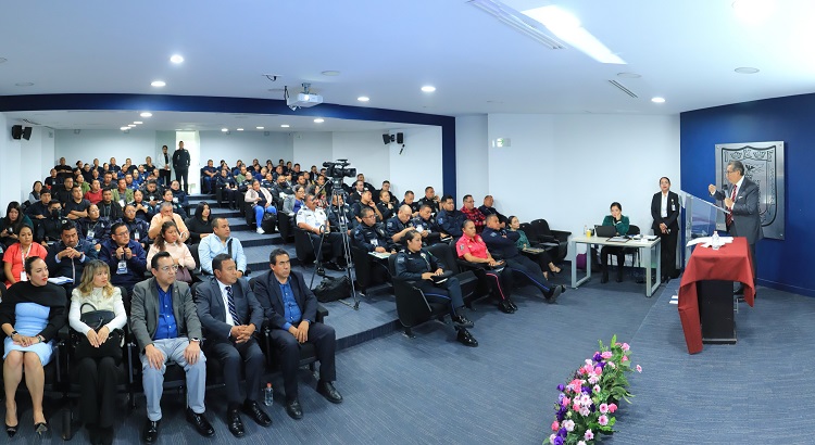 «Modelos de intervención policial «es la ponencia magistral que ofreció el Doctor Serafín Ortiz Ortiz, Rector de la Universidad Autónoma de Tlaxcala (UATx), a representantes de cuerpos policiales de 23 municipios de Tlaxcala y de la Secretaría de Seguridad Ciudadana (SSC).
