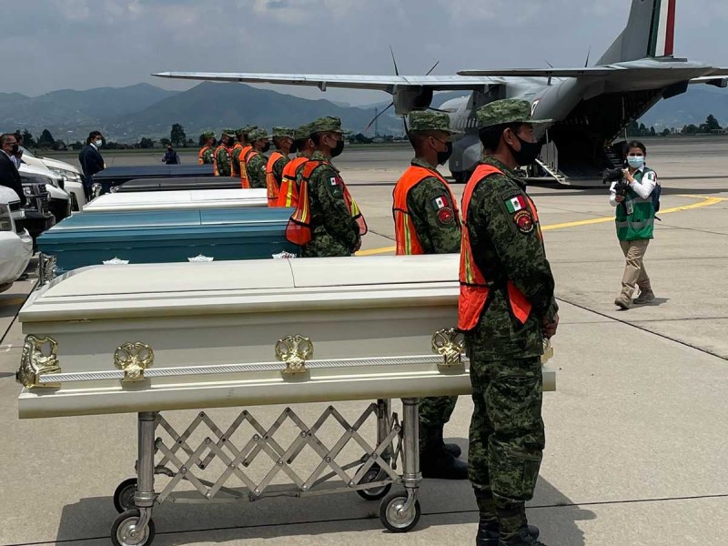 La aeronave aterrizó en el Aeropuerto de Toluca desde donde serán trasladados vía terrestre a sus lugares de origen donde serán recibidos por sus familiares para darles sepultura.