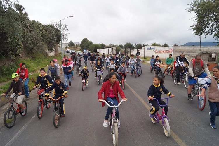 Entre las acciones que se realizan en las comunidades se encuentra el paseo ciclista «Tlaxcala Sobre Ruedas», en el que participan las familias.