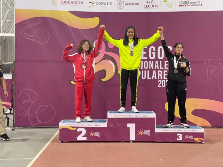 Vanessa Navarrete Chamorro, en la rama femenil 10-12 años logró dos bronces, uno en arma corta y otro en manos libres, mientras que Erika Ailin Pérez Juárez obtuvo bronce en combate en la división 40-45 kilogramos.