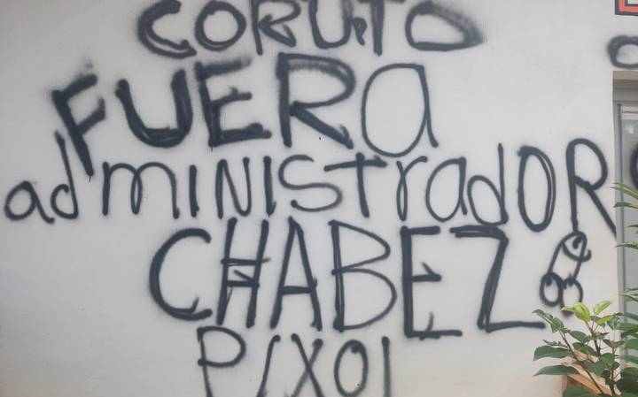 “Corrupto fuera administrador Chabez Pixol”, escribió uno de los grupos armados en el muro de la administración del mercado que fue creado en el gobierno de Juan Sabines, en 2012.