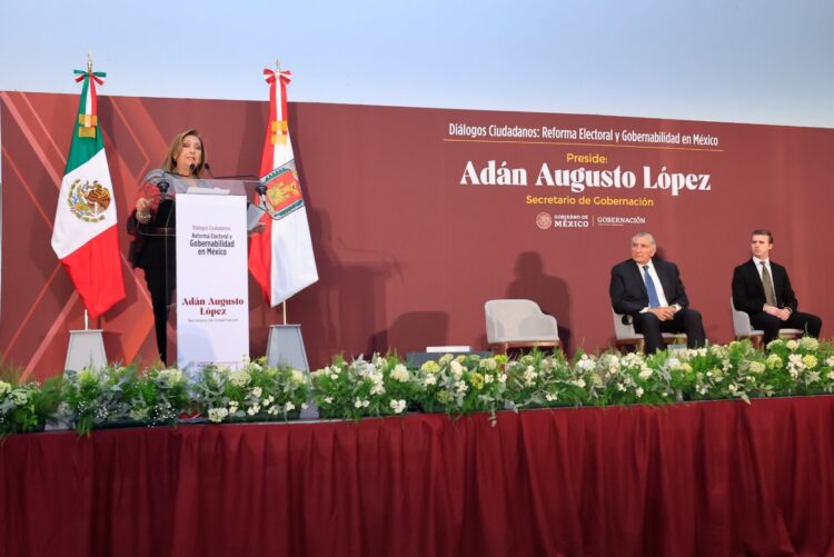 Al encabezar el evento ‘Diálogos Ciudadanos: Reforma Electoral y Gobernabilidad en México’, en el Centro de Convenciones de la entidad, el titular de Gobernación subrayó que la mandataria estatal es un ejemplo de trabajo, dedicación, entrega y preocupación por su gente.