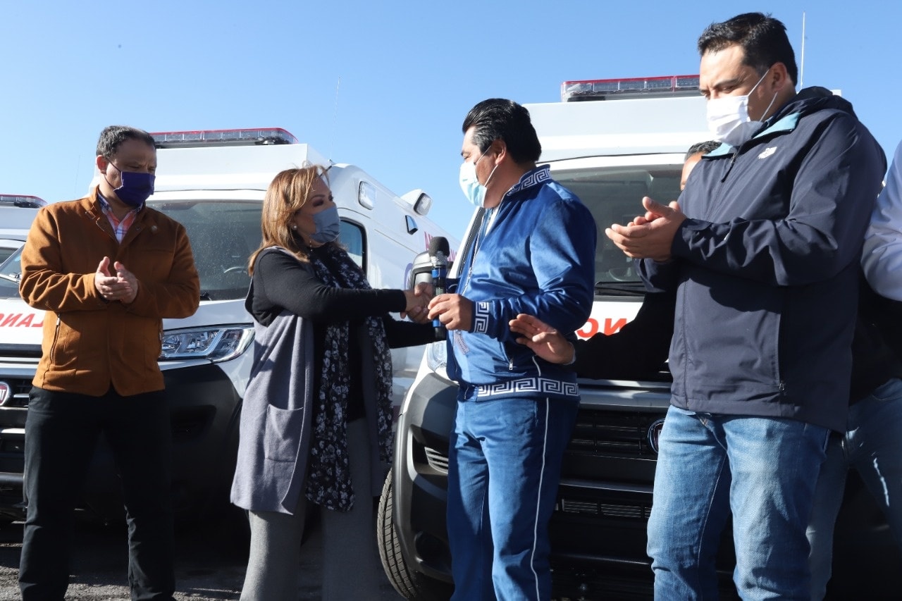 “Como resultado de este trabajo hacemos la entrega de las ambulancias, en un ejercicio de corresponsabilidad con los municipios de nuestro estado, además de que otras más serán distribuidas en hospitales y localidades, gracias al apoyo del presidente de la República, Andrés Manuel López Obrador, seguiremos trabajando para hacer una nueva historia por la salud de Tlaxcala”, agregó.