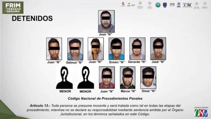 Las autoridades no pudieron conectar los hechos hasta tres días después. Un convoy fue atacado el 29 de mayo con armas largas mientras patrullaba el rancho de Tierra Amarilla, en Nacajuca, cerca del sitio del hallazgo del cuerpo desmembrado. La policía había seguido las pistas dadas por una denuncia anónima hasta allí, donde fueron recibidos con ráfagas de alto calibre. El apoyo de la Armada fue determinante para detener a 12 personas, entre las que se encontraban los dos menores de edad. Ninguno de los arrestados es originario de Jalisco, la entidad en la que se gestó Nueva Generación, una escisión del Cartel de Sinaloa. Uno de los detenidos era originario de Guatemala. El resto, de Tabasco.