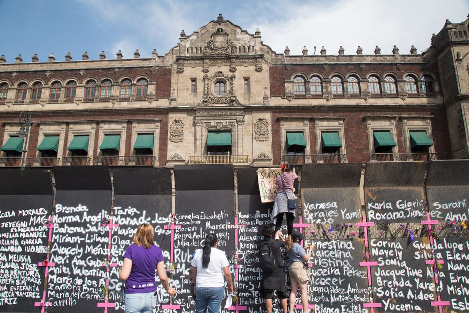 “Jálense al Zócalo, estamos pintando el muro”, se comunicaban por redes sociales. “Listas de nombres, por favor, víctimas de hace 10 años, víctimas recientes”. Con brocha gorda y pintura blanca para contrastar con el metal oscuro, los nombres de cientos, quizá miles, de víctimas de feminicidio fueron escritos dándole un nuevo significado vital y potente al muro.