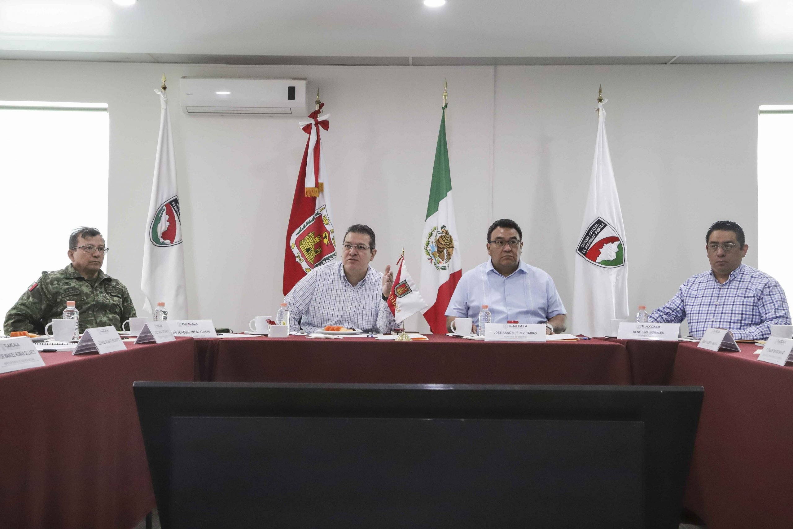 A la reunión asistieron el General de Brigada Diplomado de Estado Mayor, José Joaquín Jiménez Cueto, Comandante de la 23 Zona Militar; José Aarón Pérez Carro, Secretario de Gobierno; Elizabeth Ibarra Sarlat, Delegada en Tlaxcala de la FGR; José Antonio Aquiahuatl Sánchez, Procurador General de Justicia del Estado; Víctor Manuel Román Solares, Inspector General de la Guardia Nacional; Gabriel Barbosa Valdovinos, titular del Centro Nacional de Inteligencia; Alberto Amador Leal, Jefe de la Oficina del Ejecutivo; Eduardo Valiente Hernández, Secretario de Seguridad Ciudadana y Ana Belén Rúa Lugo, Comisionada Ejecutiva del Sistema Estatal de Seguridad Pública; así como funcionarios estatales.