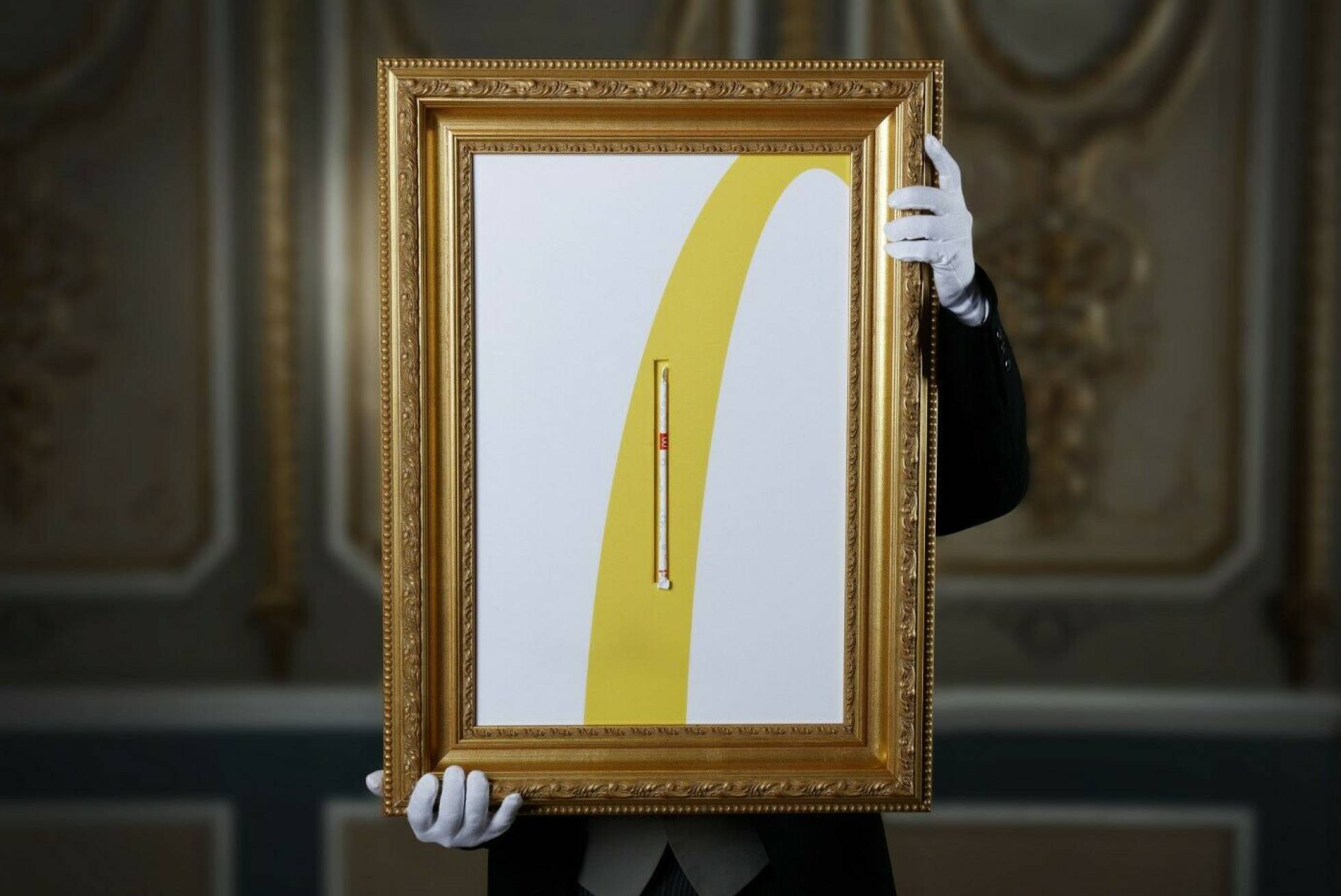 La pajita espera a su próximo dueño metida en su envoltorio de plástico, como una pieza de coleccionista, y enmarcada en un cuadro dorado que bien podría acotar la obra de un gran artista en el Museo del Prado.