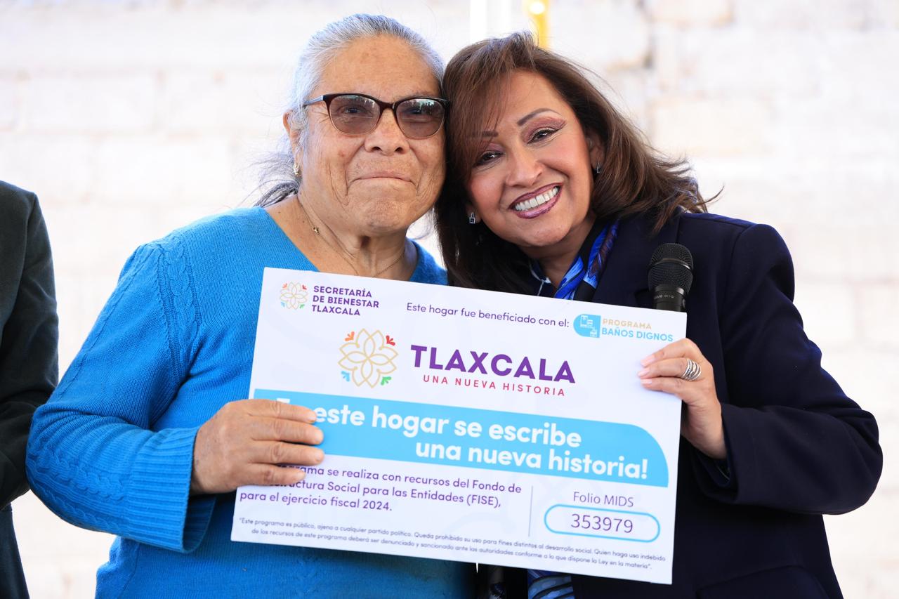 La gobernadora Lorena Cuéllar Cisneros entregó sanitarios con biodigestor del Programa Baños Dignos de la Secretaría de Bienestar estatal, para elevar su calidad de vida y garantizar condiciones de higiene y salud a 20 familias de la comunidad de Emiliano Zapata del municipio de Huamantla, aunado a reducir las condiciones de pobreza o rezago municipal.