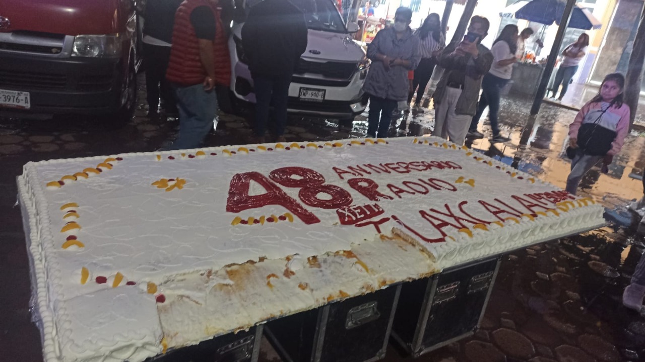 Durante esta magna festividad, el gerente de Radio Altiplano y XETT, René Arellano, acompañado de los representantes de la Secretaría de Cultura (SC) y de la Coordinación de Radio, Cine y Televisión de Tlaxcala (Coracyt), encabezó la partida del pastel monumental de cerca de 3 metros de largo.