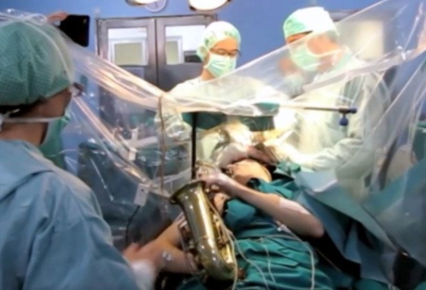 Ante la inminente operación, le propusieron participar en un procedimiento experimental que les ayudaría a averiguar qué parte del cerebro procesa la música. Para eso, el paciente debería tocar el saxo mientras era intervenido y así, además, los médicos se asegurarían de no dañar esa parte del cerebro. Fabbio Aceptó.