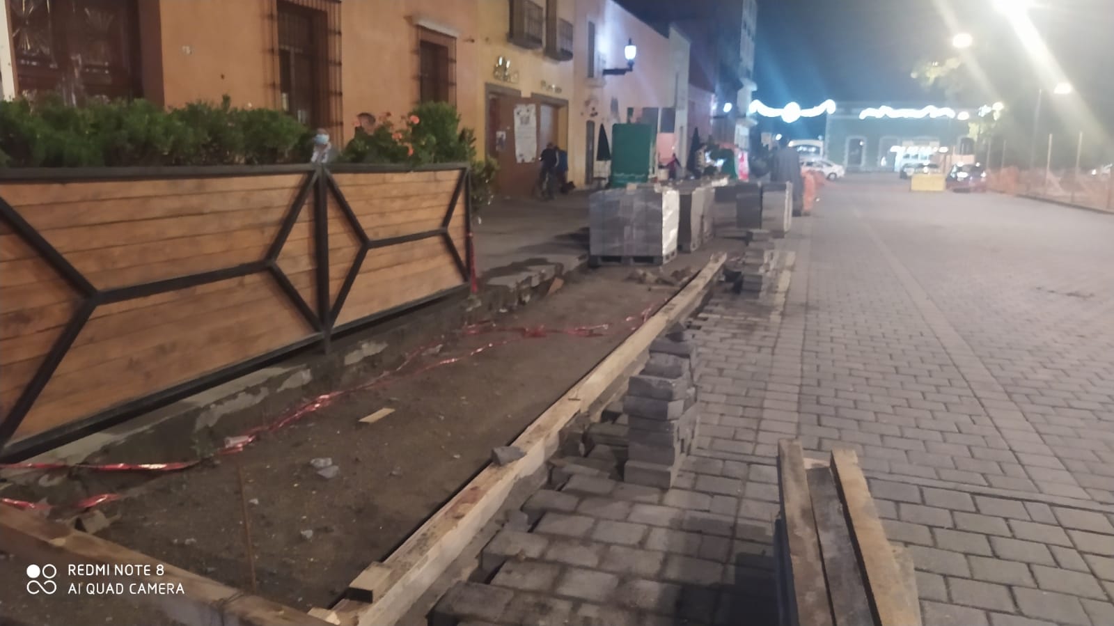 A la altura de la presidencia municipal cruzamos la calle en dirección al zócalo. Ampliaron también las banquetas de ese lado, y del que da al portal chico.