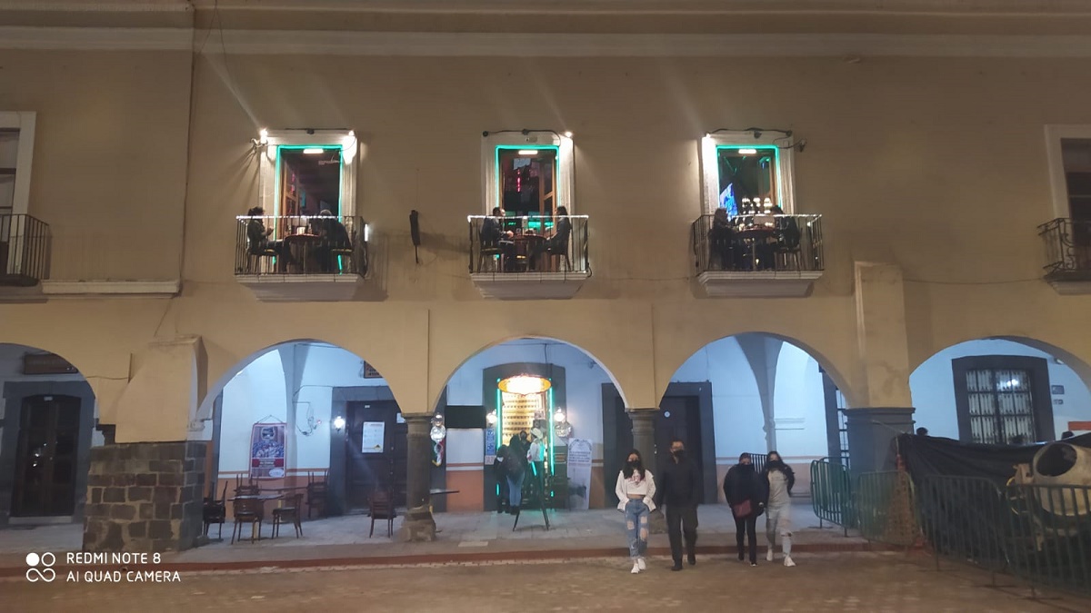 De vuelta a la oficina, notamos que ningún cliente de los balcones del segundo piso del portal grande trae puesto el bozal.