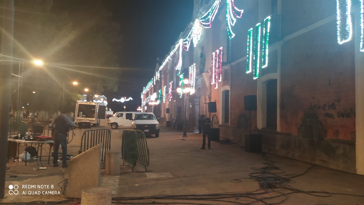 A un costado de Palacio de Gobierno, un colaborador de la gobernadora nos informa que hubo que adelantar una hora la ceremonia. Lo confirma ante el antiguo edificio del ayuntamiento un uniformado.