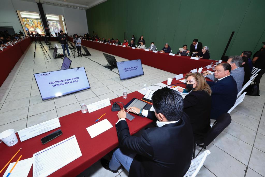 En una reunión de trabajo para presentar el programa Peso a Peso para obra pública, entre el gobierno del estado-municipios 2024, la mandataria estatal resaltó la importancia de caminar de la mano con las y los alcaldes para mantener la coordinación interinstitucional y cumplir con las metas programadas en materia de salud, vivienda, educación, seguridad, cultura, servicios públicos e infraestructura.