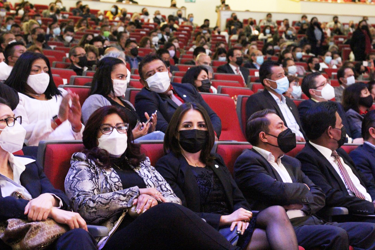 En el presídium, acompañaron a la Gobernadora del Estado, el Secretario de la Función Pública Federal, Roberto Salcedo Aquino; la Secretaria de la Función Pública del Estado, Eréndira Cova Brindis; la diputada presidenta de la Comisión Permanente del Congreso del Estado, Reyna Flor Báez Lozano; la Magistrada Fanny Margarita Amador Montes, y la Presidenta de la Comisión Estatal de Derechos Humanos, Jakqueline Ordoñez Brasdefer.