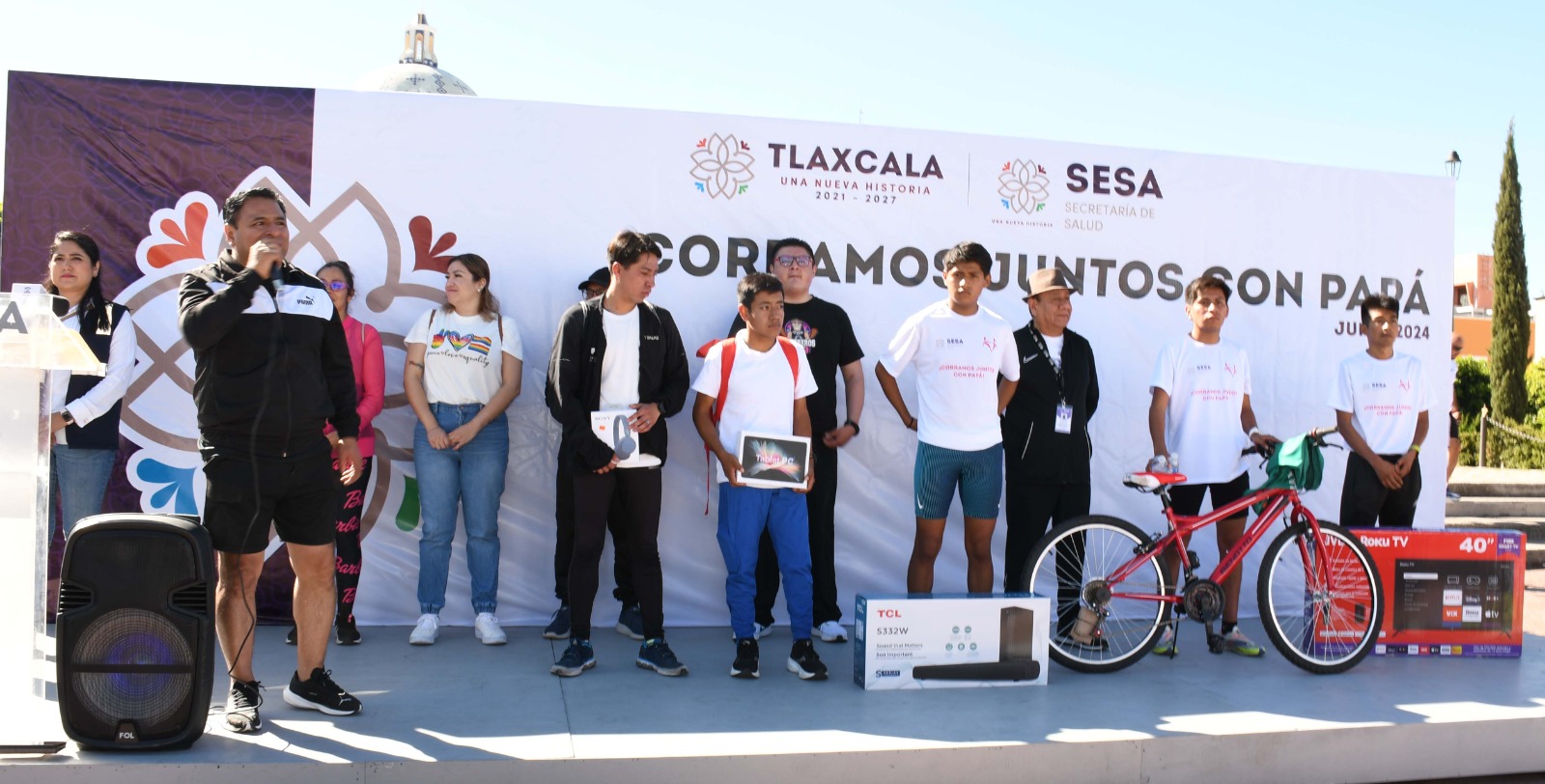En la avenida Juárez, junto al Palacio de Gobierno, inició la actividad física que pasó por la Avenida Miguel de Lardizábal y Uribe, para culminar en la calle Ignacio Allende, frente al Congreso del Estado, donde se entregó un trofeo y una pantalla de 40 pulgadas al primer lugar Enrique Acoltzi Bautista, así como una bicicleta al segundo lugar Michel Enrique Galindo. También, un teatro en casa al tercer lugar Alexander Galindo Blas, además de una Tablet al cuarto ganador David León Maldonado, y unos audífonos al quinto ganador, Antonio Martínez Zamora.