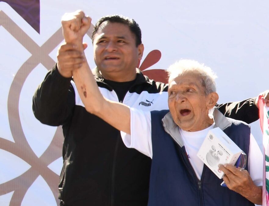 De igual forma, se otorgó un reconocimiento especial al papá Gabriel González Castañón de 85 años, quien se trasladó, junto con su familia, desde Orizaba, Veracruz, a la capital tlaxcalteca para participar en la Carrera “Trota o camina junto con papá».