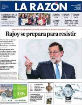 La situación en La Razón está siendo más que crítica, me comunican fuentes poco solventes de la redacción. Francisco Marhuenda continúa encerrado en su despacho sin agua ni comida desde que se completó el recuento. Desde el fondo de su reclusión, se escucha de vez en cuando una sola frase, teñida de una rara mezcla de marcialidad y melancolía, como si fuera posible un legionario tierno: “El Alcázar no se rinde, el Alcázar no se rinde, el Alcázar no se rinde…”. Los sensibles redactores del diario han traducido hoy la histórica frase al civilizado, a ver si desenajenan al periodista catalán: “Rajoy se prepara para resistir”.