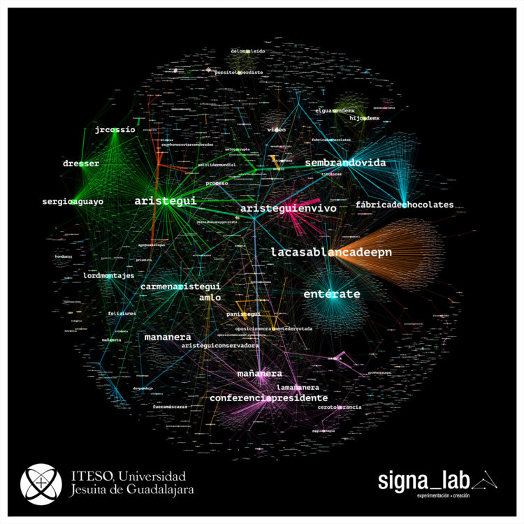 Signa_Lab ITESO analizó publicaciones en esa red social después de la publicación del reportaje y las declaraciones del presidente: fueron casi 50 mil tweets en los que se detectaron comunidades de usuarios que impulsaron mensajes en defensa del presidente.