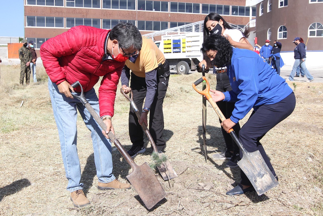 Como parte del proyecto de reforestación de la secretaría estatal de Agricultura (SEFOA), miembros de la Universidad Metropolitana de Tlaxcala (UMT) sembraron en el campus de la institución 500 árboles de las variedades pino piñón y cedro blanco.