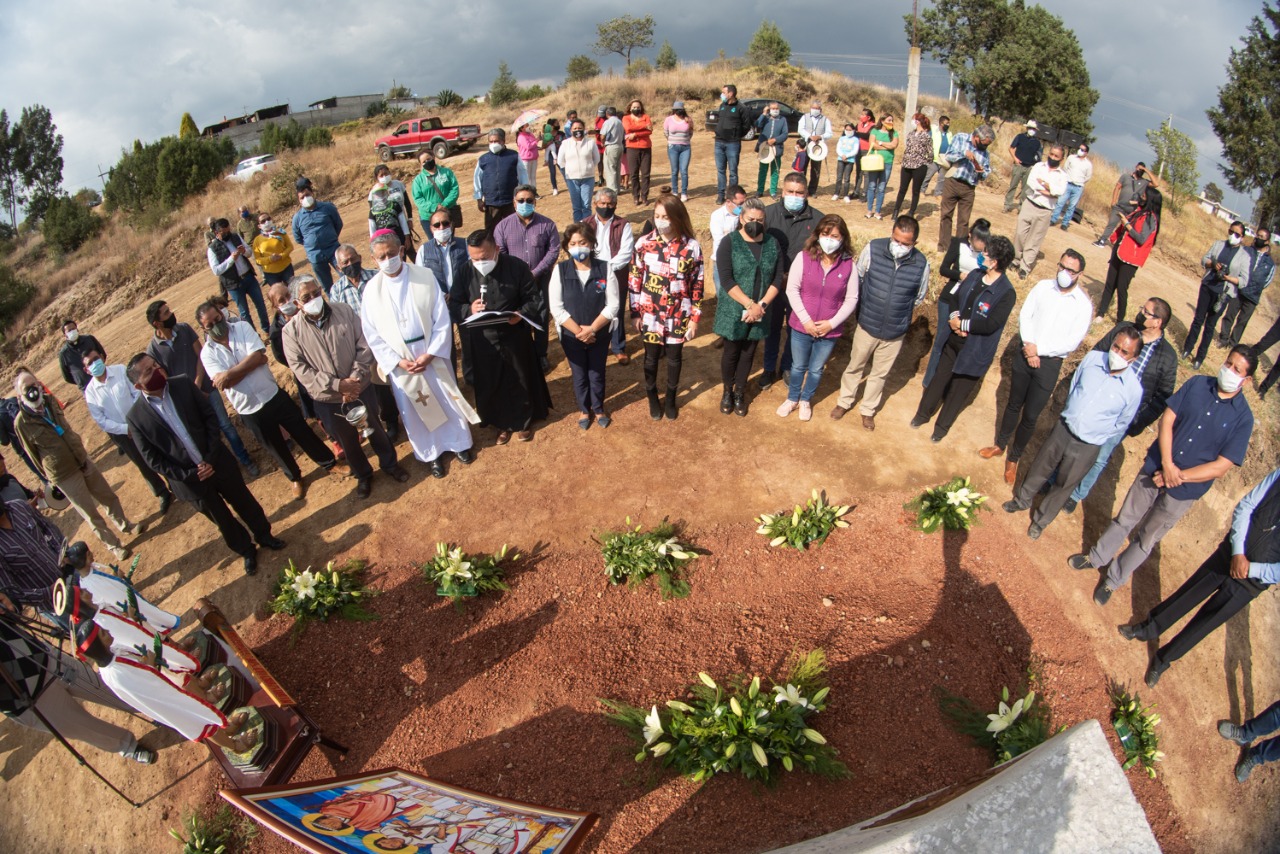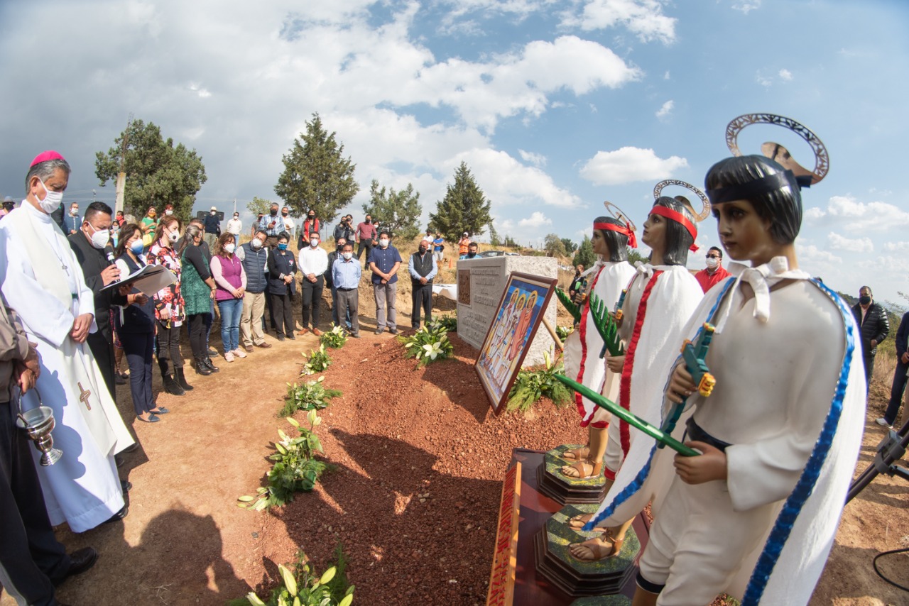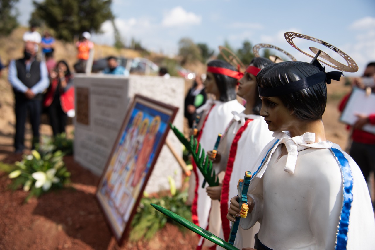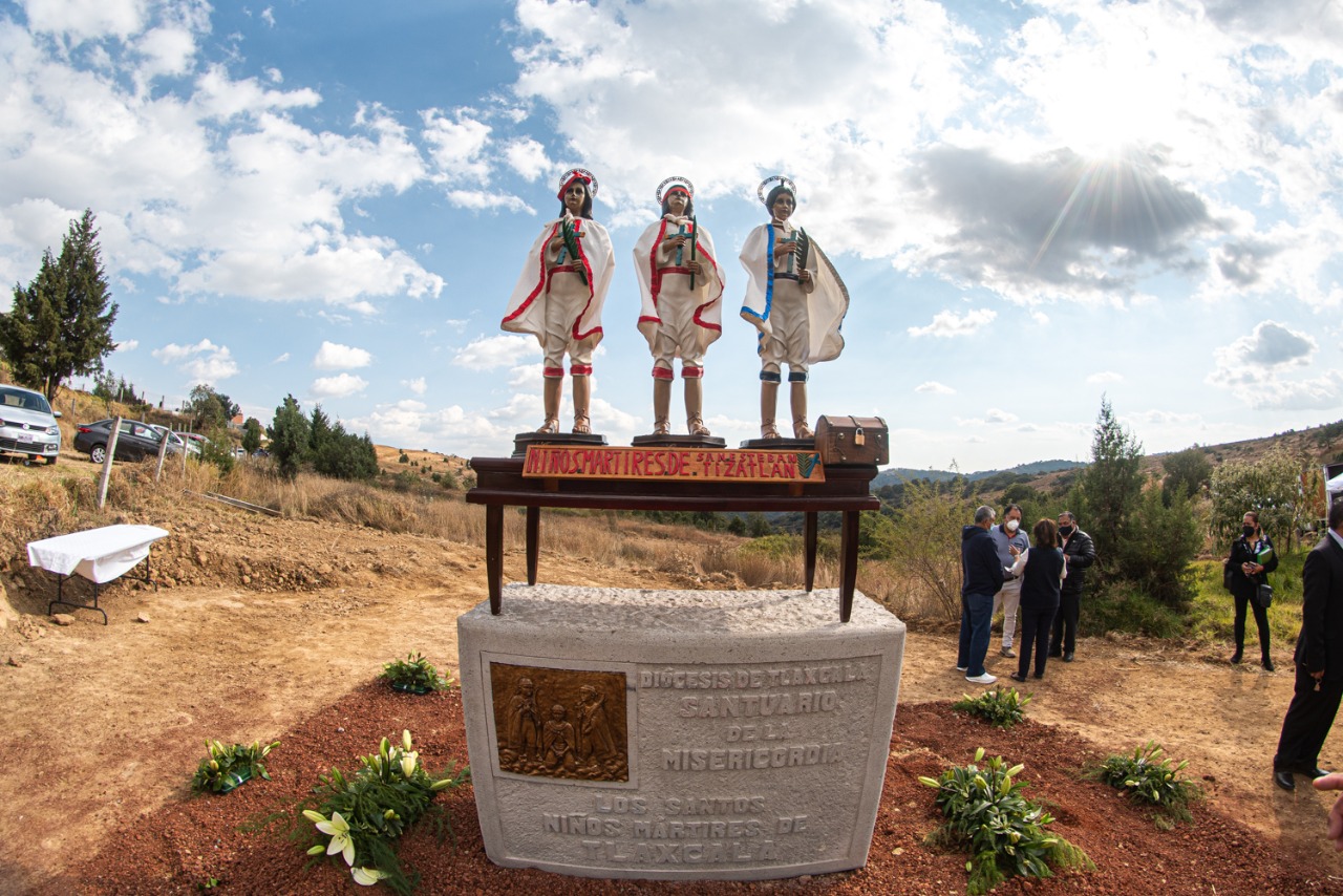 La primera piedra del santuario tiene la imagen de los Niños Mártires de Tlaxcala, tallada por artesanos del municipio de Xaltocan.