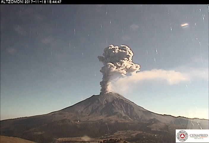 Cuatro horas antes, el activo volcán con forma de un cono simétrico cuyo nombre nahua significa “Cerro que humea”, situado a 72 kilómetros de la Ciudad de México y 5500 metros sobre el nivel del mar, emitió una espectacular columna de vapor, agua y ceniza que captó la atención de los pobladores de Tlaxcala, Puebla y Morelos.