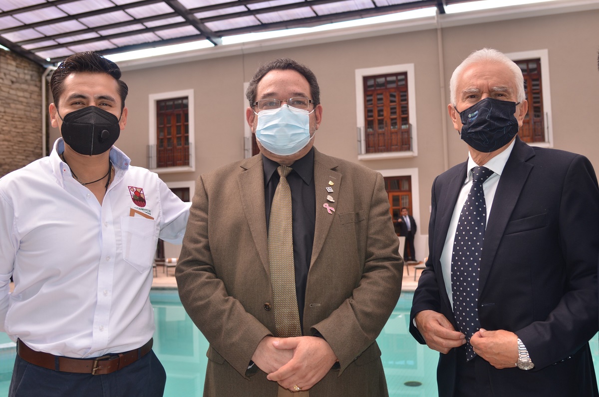 Alcalde de Chiautempan, Gustavo Jiménez (der) y Alberto Orozco (centro), dirigente distrital de CANACO.