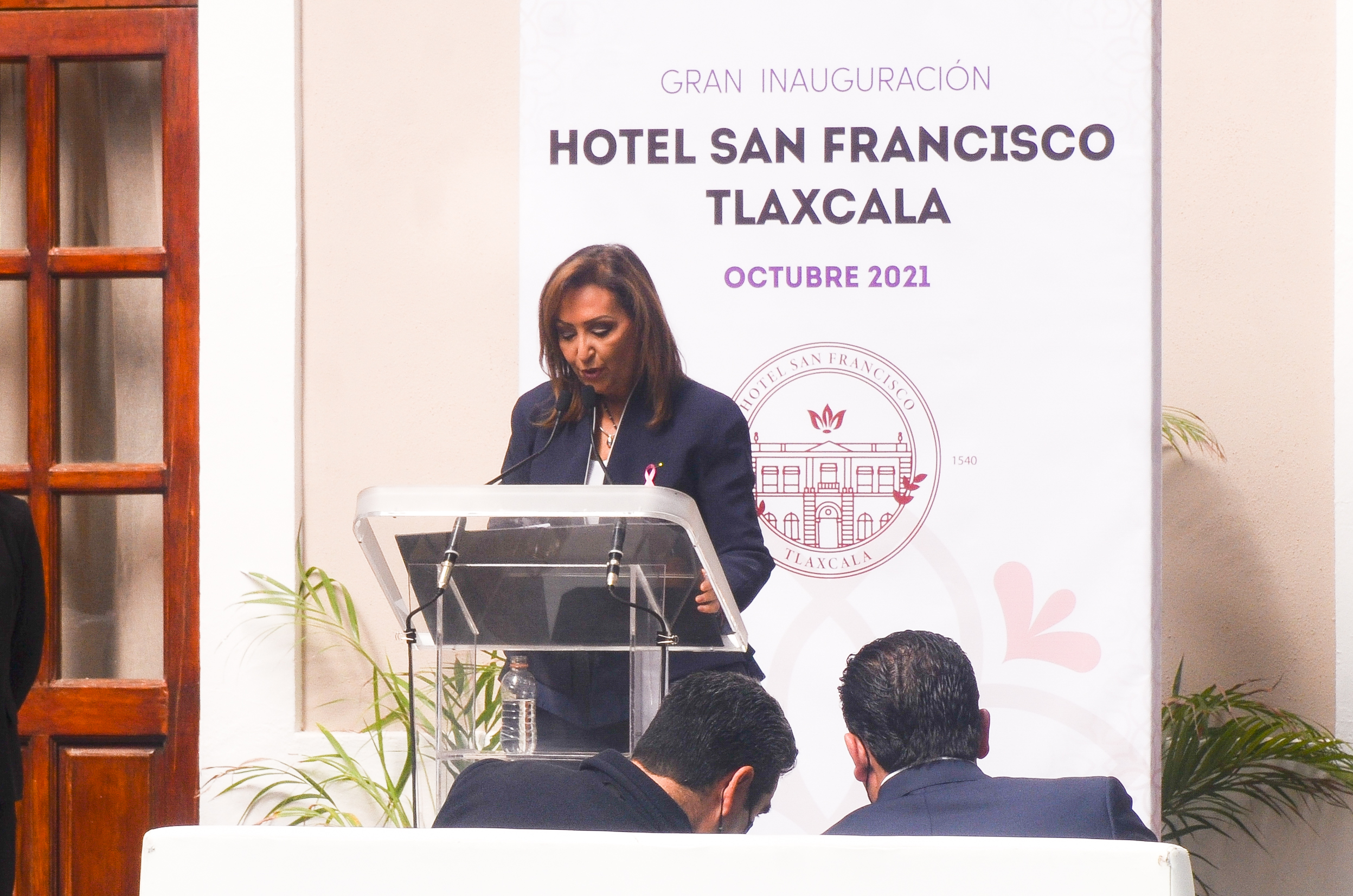 El corte de listón en el patio con alberca del hotel, corrió a cargo de la gobernadora Lorena Cuéllar y una representante de la sociedad de inversionistas; y fue atestiguado por los secretarios estatales de Turismo y de Educación, respectivamente Josefina Rodríguez y Homero Meneses, así como los alcaldes Jorge Corichi (Tlaxcala) y Gustavo Jiménez (Chiautempan).