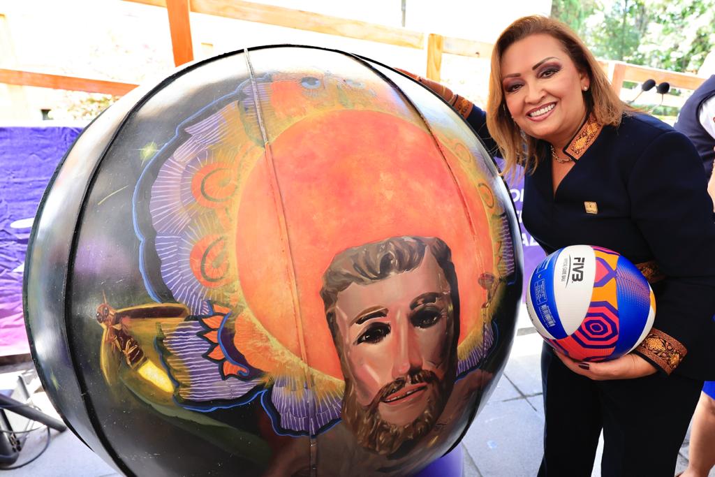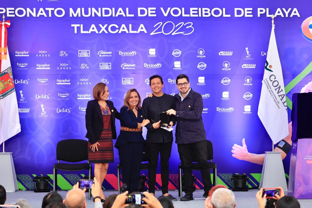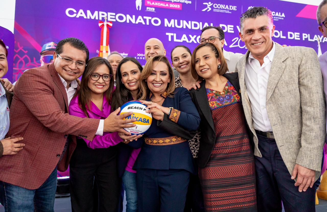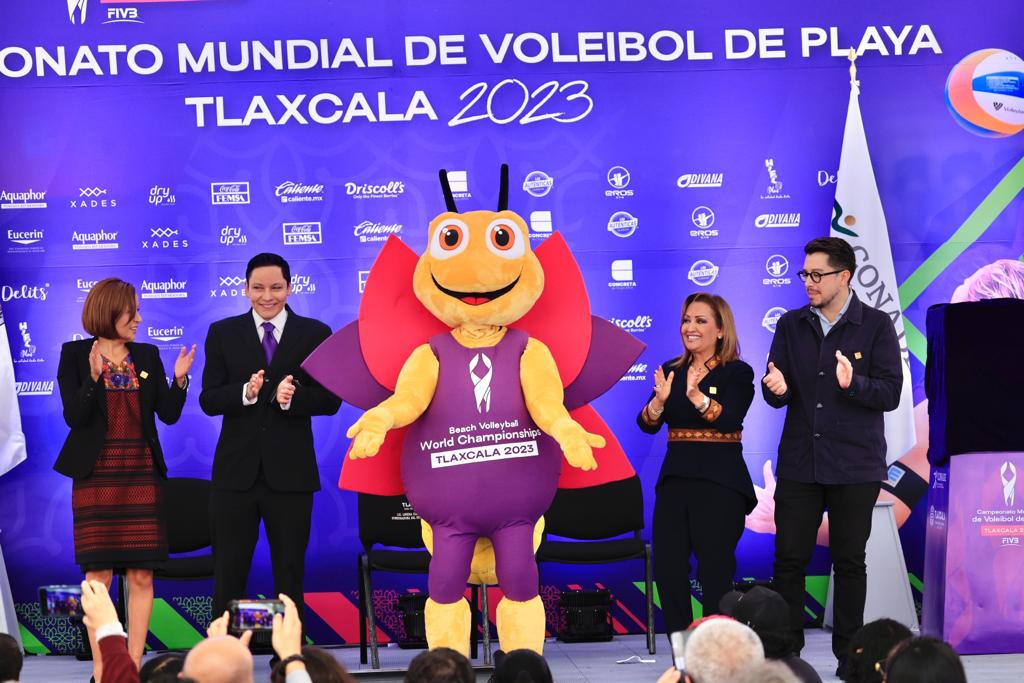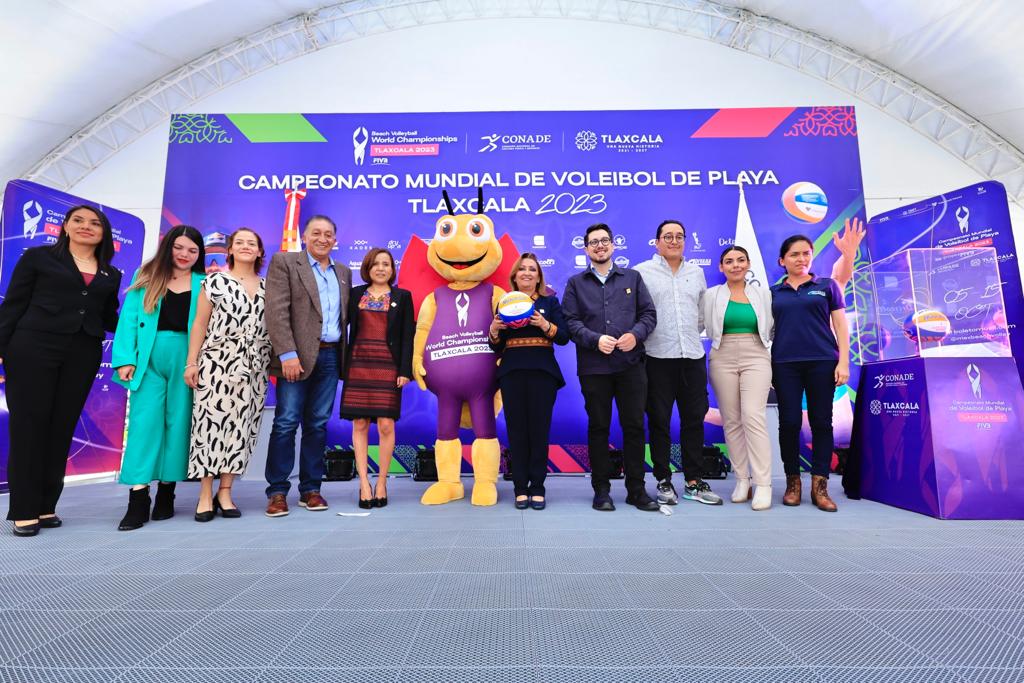 La gobernadora Lorena Cuéllar Cisneros encabezó la presentación de la mascota “Lucy, la luciérnaga” y el balón oficial del Campeonato Mundial de Voleibol de Playa Tlaxcala 2023, a realizarse del 5 al 15 de octubre; además, dio a conocer a los nuevos patrocinadores que se suman a este magno evento y a los artistas creadores de 12 balones gigantes, los cuales serán instalados en las sedes.