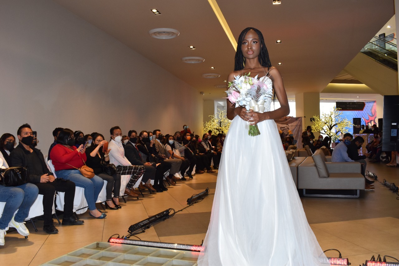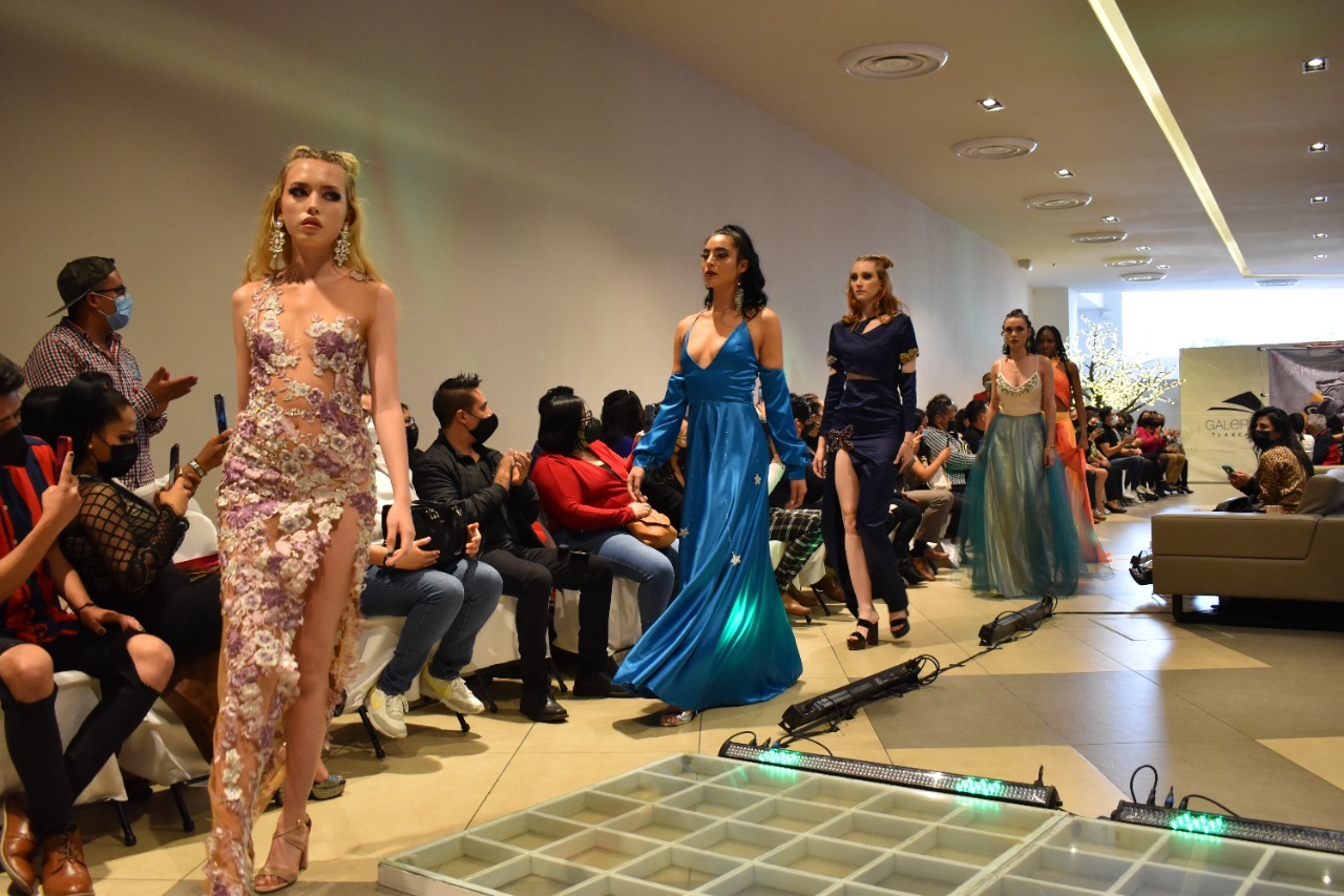La pasarela también incluyó la presentación de una colección de vestidos de noche y vestidos de novia inspirados en la tendencia de arte, teatro y paisajismo.