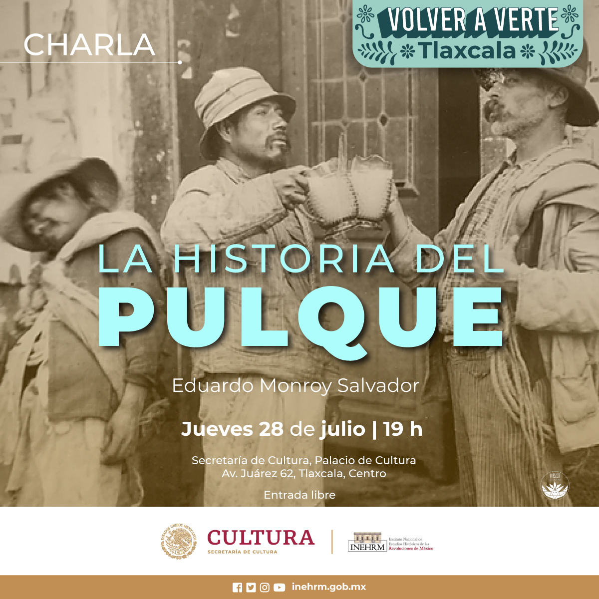 La Secretaría de Cultura del Gobierno de México, a través del Instituto Nacional de Estudios Históricos de las Revoluciones de México (Inehrm), invita a la conferencia “Historia del Pulque” que se llevará a cabo de manera presencial en el Palacio de Cultura de Tlaxcala, el jueves 28 de julio a las 19:00 horas, a cargo del historiador e investigador del Inehrm, Eduardo Monroy.
