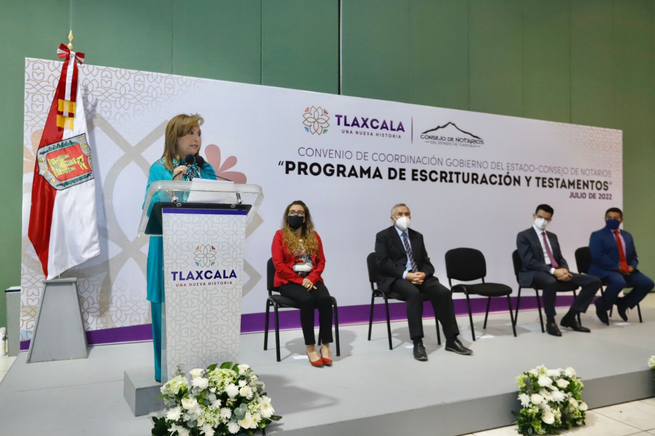La gobernadora Lorena Cuéllar Cisneros y el Consejo de Notarios del estado signaron un convenio de colaboración para la creación del “Programa de escrituración y testamento a bajo costo”, a través del cual darán certeza y seguridad jurídica a la población tlaxcalteca sobre su patrimonio y la sucesión del mismo, así como facilitar el trámite referente a la donación de órganos.