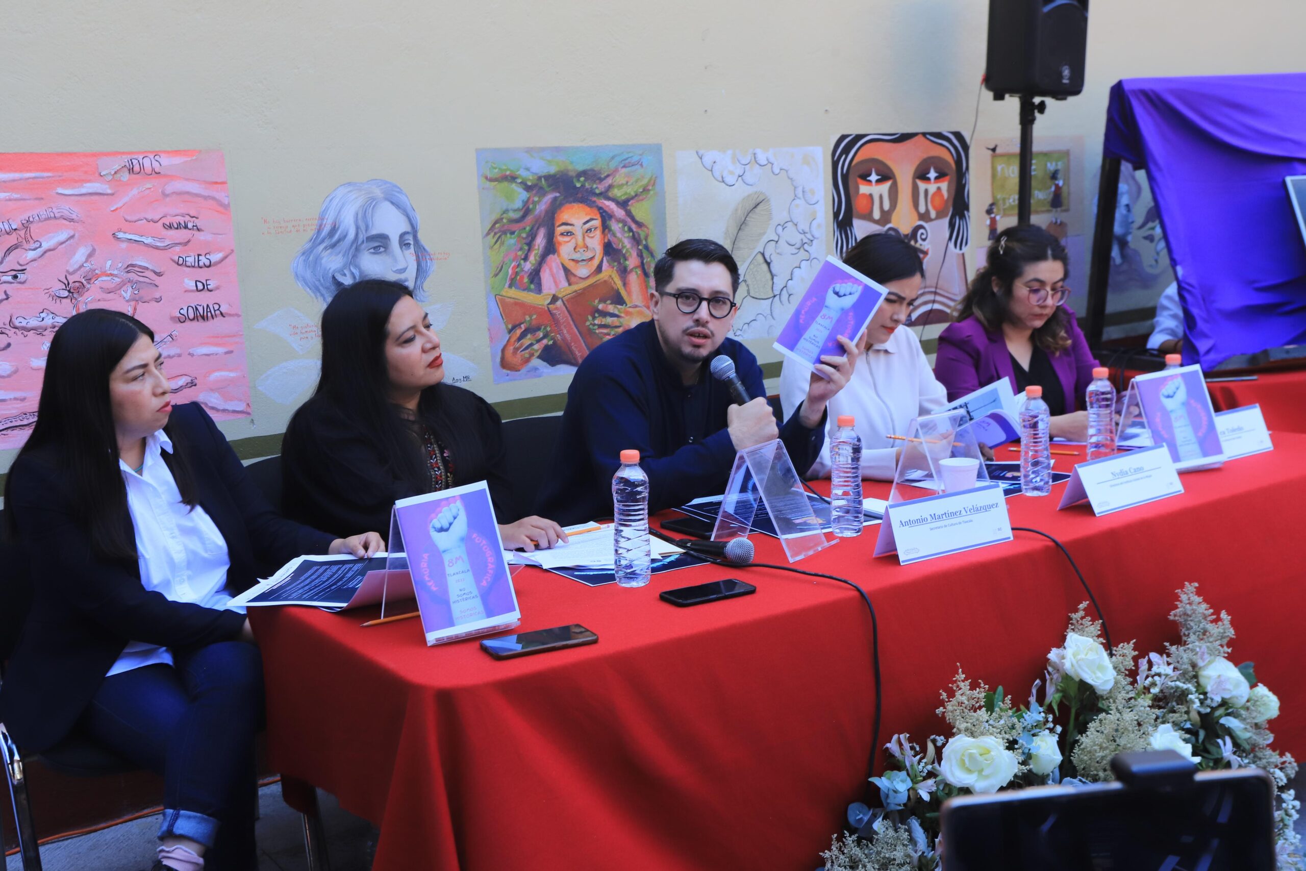 Durante la rueda de prensa, el secretario de Cultura, Antonio Martínez Velásquez afirmó ser un aliado del feminismo, al tiempo que subrayó que en la dependencia que él dirige se cumple con la instrucción de la gobernadora Lorena Cuéllar Cisneros de reforzar el diálogo permanente y constructivo con los colectivos feministas y muestra de ello es esta jornada.