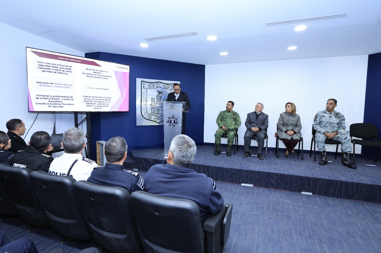 En la primera vertiente, detalló que impulsará seis acciones específicas: consolidar a la SSC como una institución sólida que trascienda a través de varios periodos de gobierno; aplicación del Modelo Nacional de Policía y Justicia Cívica (MNPJC); formación y profesionalización de la Policía Estatal a través de la creación de la Academia Tlaxcalteca de Seguridad; mejorar las condiciones laborales de acuerdo con las posibilidades del presupuesto estatal; combate a la corrupción y la creación del Servicio Policial de Carrera.
