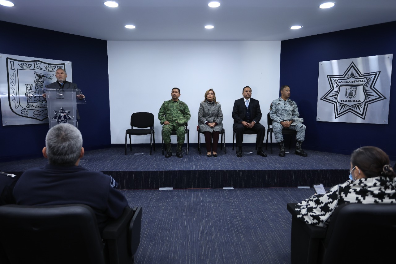 Frente a la gobernadora Lorena Cuéllar Cisneros, Celaya Gamboa informó que la seguridad pública en Tlaxcala estará basada en los ejes de desarrollo y fortalecimiento institucional, combate a la delincuencia y participación ciudadana.