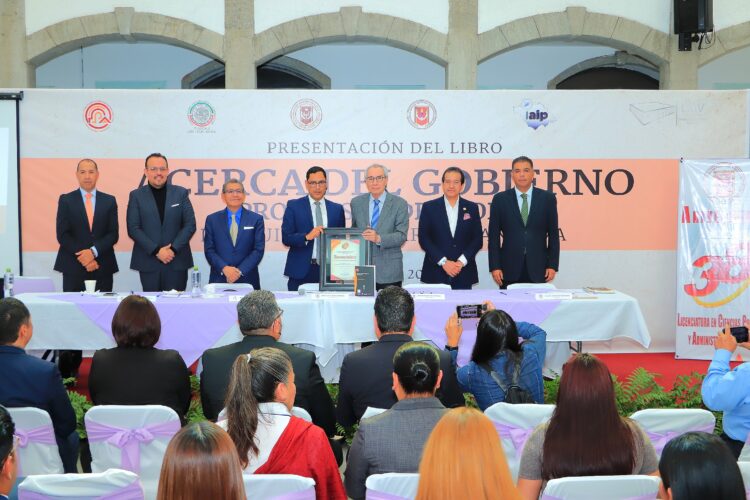 La Universidad Autónoma de Tlaxcala (UATx), el Congreso del Estado de Tlaxcala, el Instituto de Acceso a la Información Pública y Protección de Datos Personales del Estado de Tlaxcala (IAIP), y el Colegio de Politólogos y Administradores Públicos del Estado de Tlaxcala (COLPAET), en el marco del 38° aniversario de la Licenciatura en Ciencias Políticas y Administración Pública, llevaron a cabo la presentación del libro «Acerca del Gobierno. Propuesta de una teoría», del reconocido académico e investigador emérito Doctor Luis F. Aguilar Villanueva, celebrado en el patio vitral del Palacio Legislativo.