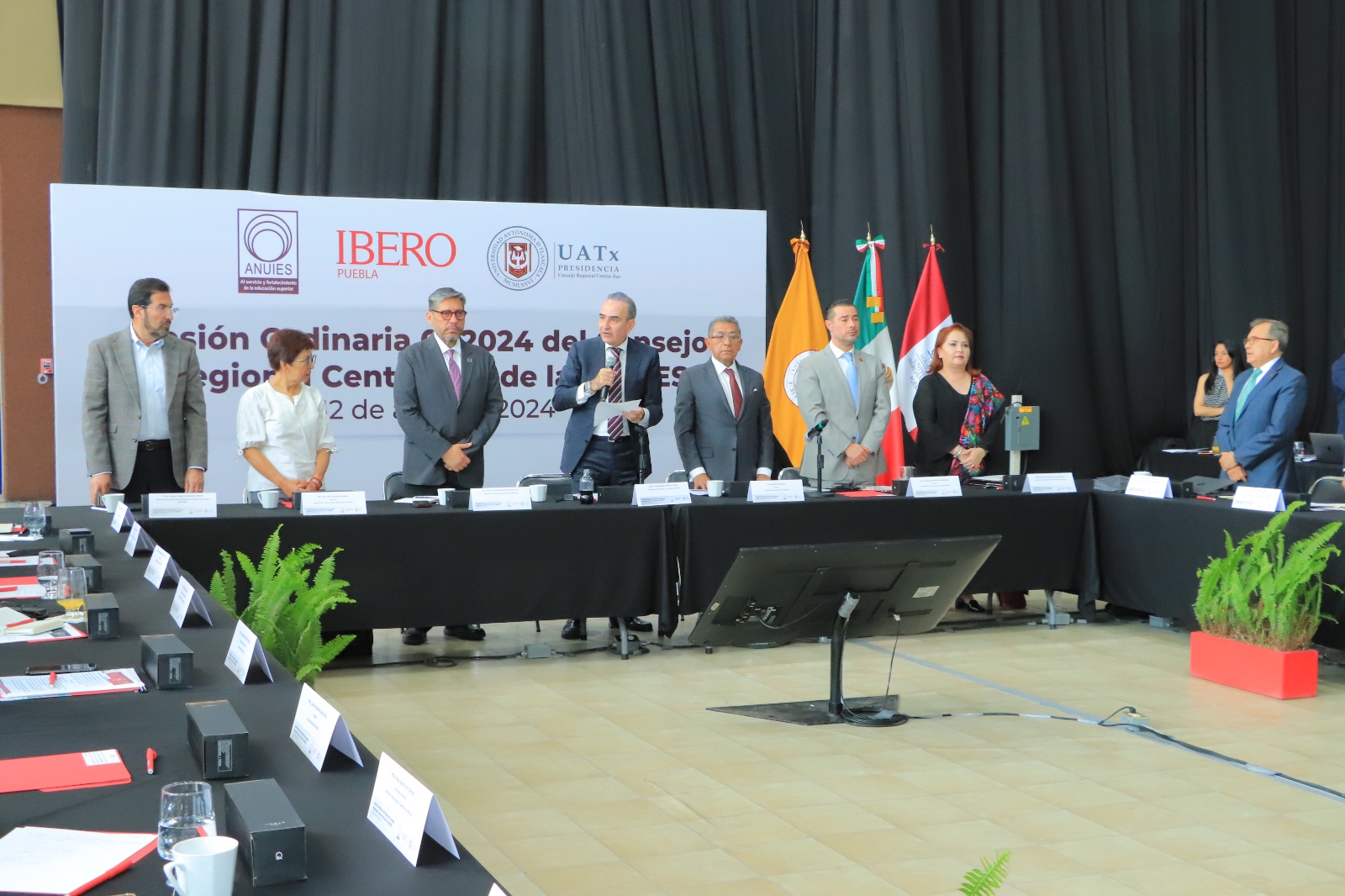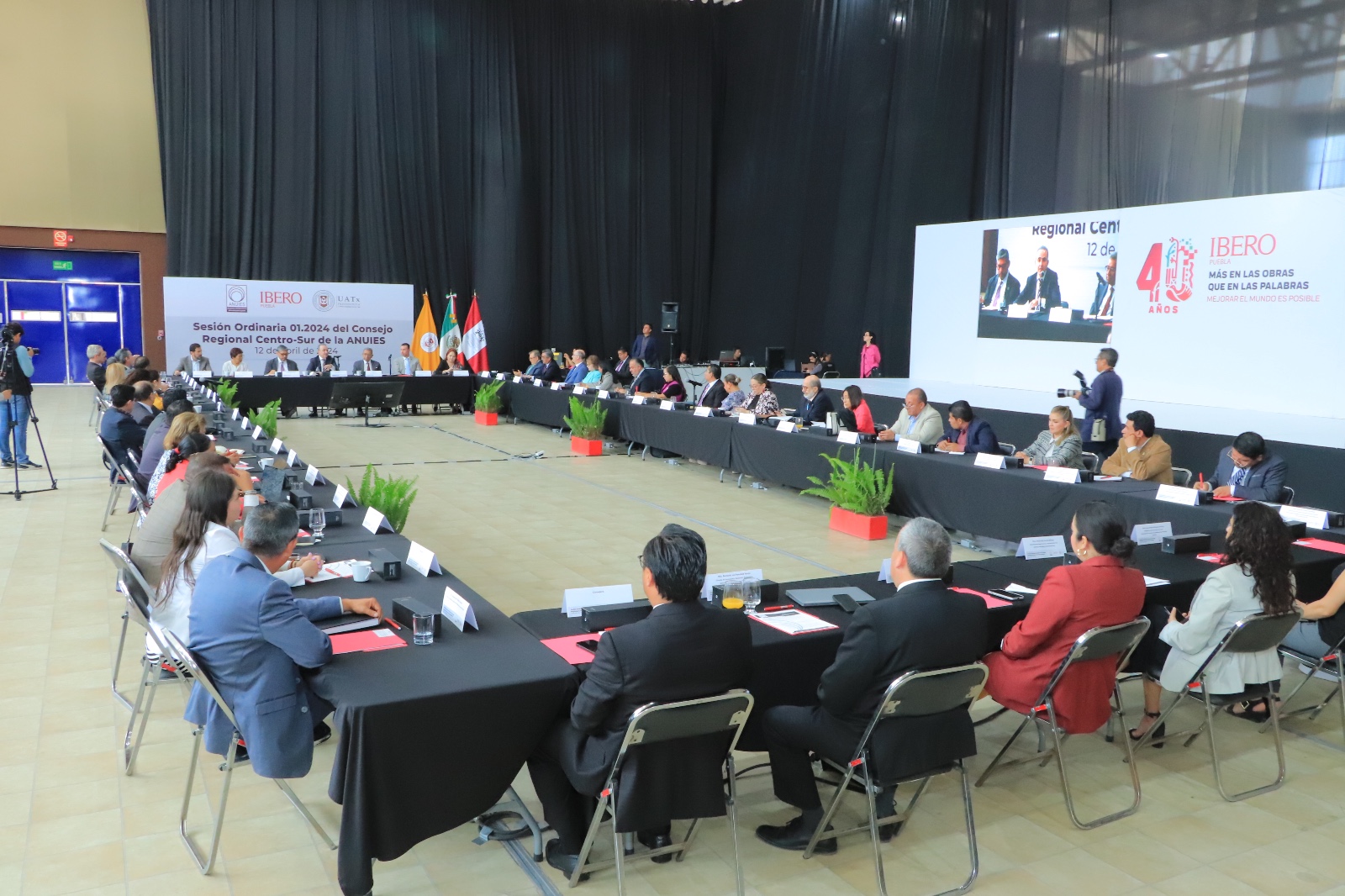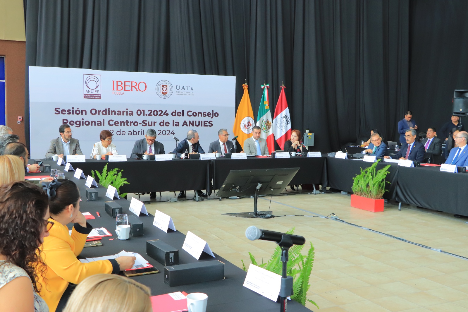 Para direccionar acciones que conduzcan a la excelencia educativa y a la generación de acuerdos para el fortalecimiento de la enseñanza profesional, el Doctor Serafín Ortiz Ortiz, Presidente del Consejo Regional Centro-Sur de la Asociación Nacional de Universidades e Instituciones de Educación Superior (ANUIES) y Rector de la Universidad Autónoma de Tlaxcala (UATx) presidió la Sesión Ordinaria 01.2024, acompañado del Maestro Jorge Estefan Chidiac, Secretario de Educación Pública en el estado de Puebla y representante del Licenciado Sergio Salomón Céspedes Peregrina, Gobernador de esa entidad, teniendo como sede la Universidad Iberoamericana.