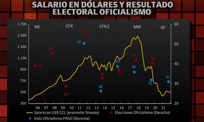 Si miramos el clima electoral general, muy determinado por la economía, y la economía por el salario real, es decir por el poder adquisitivo del salario, las cosas están igual o peor. Si miramos el salario medido en dólares, tomando el dólar con el que se fijan los precios de las cosas.