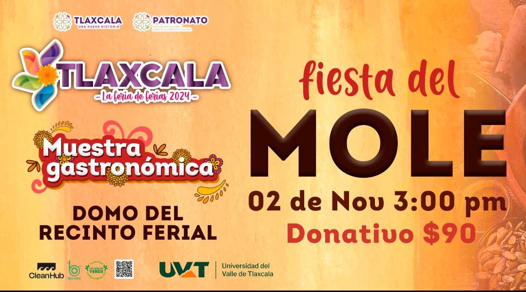 El Festival de Mole se llevará a cabo el 02 de noviembre a partir de las 15:00 horas en el Domo Blanco y para su acceso se requerirá un donativo de 90 pesos, con lo que se podrán degustar dos distintos moles a elegir provenientes de Huamantla, San Francisco Tetlanohcan, Amaxac, Contla de Juan Cuamatzi, Ixtenco, Atlangatepec, Tlaxcala capital, San Vicente Xiloxotitla, San Pedro Tlalcualpan y Nanacamilpa. La venta de boletos estará disponible a partir del 08 de octubre en las oficinas del Patronato de Feria.