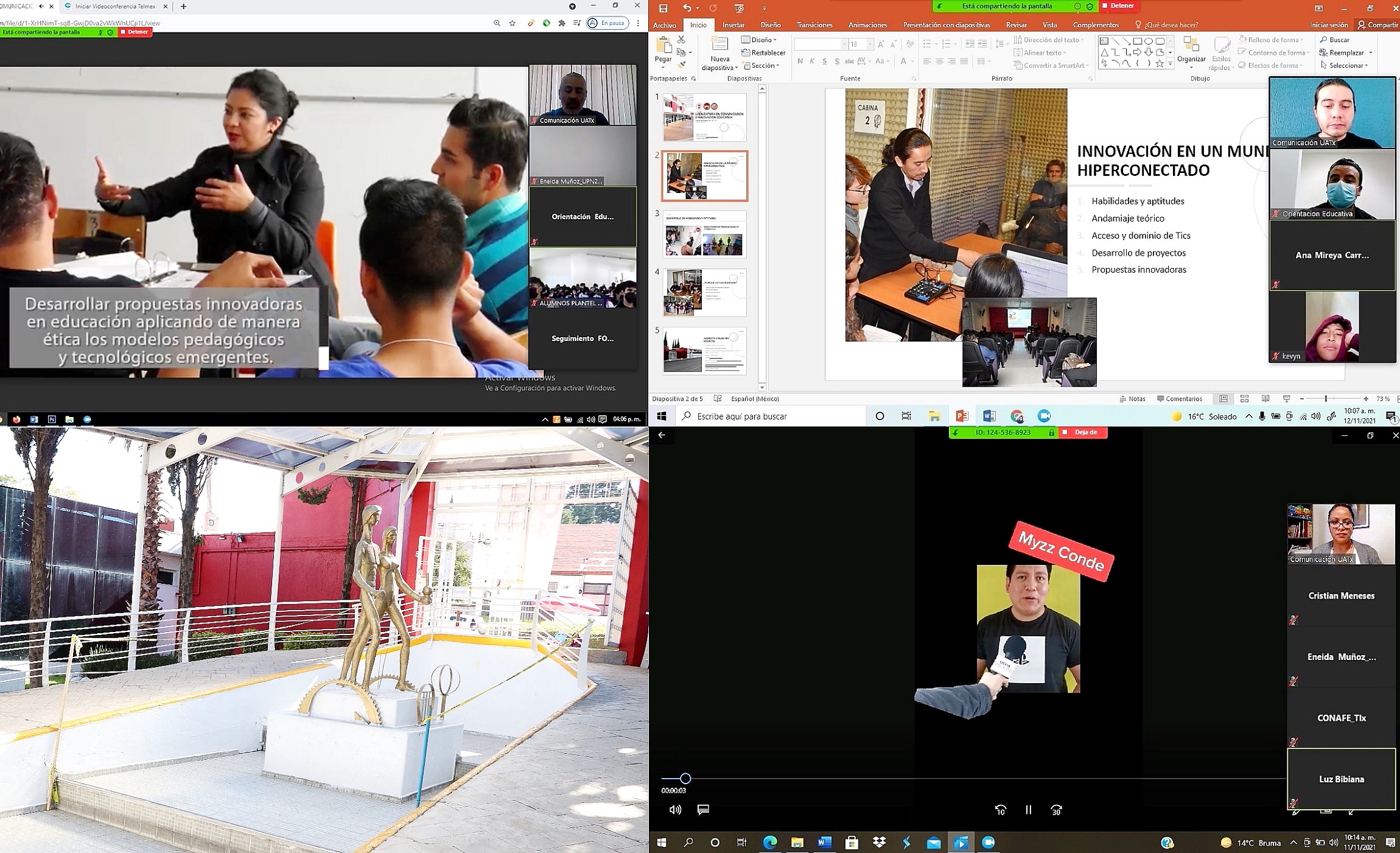 Durante su intervención, el grupo de catedráticos destacaron las áreas en las que los licenciados en comunicación e innovación educativa pueden desempeñarse, entre ellas: instituciones educativas en todos los niveles como docentes, en el área de comunicación y TIC, responsables de aulas de medios, diseñadores e instructores de cursos en modalidad en línea, en medios de comunicación como editores de contenidos en línea, community manager, productores de contenidos educativos audiovisuales, además en organizaciones públicas y privadas en las oficinas de comunicación social y recursos humanos.