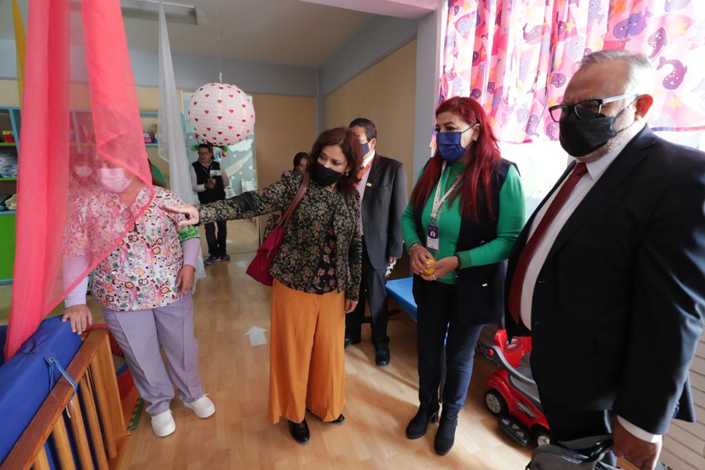Durante el recorrido a las áreas del CAI, la académica de la Universidad de Chile, Mónica Manhey Moreno y el representante de la UATx, Felipe Hernández, tuvieron la oportunidad de conversar con las y los trabajadores de la educación que atienden a cerca de 100 infantes, entre lactantes y maternales, distribuidos en diferentes grupos.